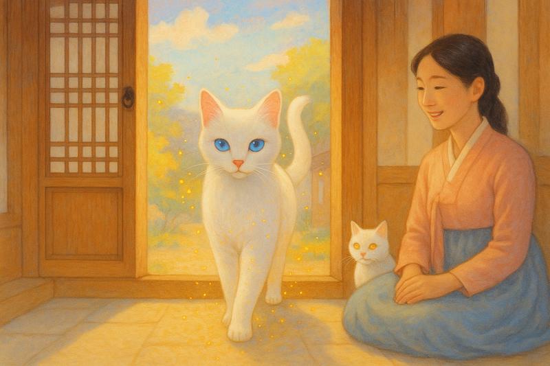 행운과 축복의 상징: 흰색 고양이는 전통적으로 행운과 재물이 들어온다는 길몽으로 해석됩니다. 특히 한국의 전통 해몽에서는 흰 고양이가 집 안으로 들어오는 꿈은 재물복이 들어오는 징조로 여겨졌습니다.