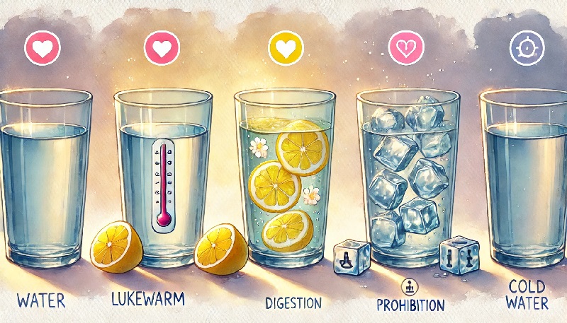 | 물 온도 | 미지근한 물 (25-35°C) | 너무 차가운 물 (특히 위장이 약한 경우) |